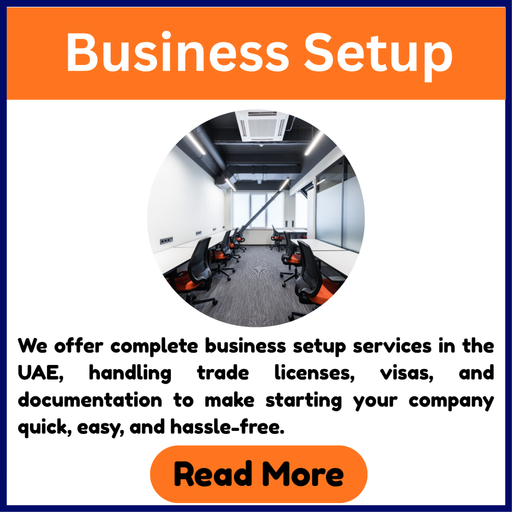 We provide all Business setup Services in single window, let it be Bank account opening , VAT Registration, Accounting & Bookkeeping or any kind of Pro Services.